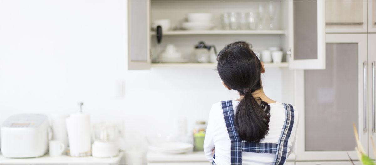 また、キッチンは調理道具やストック食材などで、物があふれがちな場所です。ポイントは家族の人数や収納にあわせた適量を置くこと。以前、整理収納レッスンにお伺いしたお宅は、夫婦2人でしたが、2人分の料理を作るには大きすぎるフライパンがあって、このひとつだけで収納場所をとってしまい、他の物が収納しづらい状態でした。