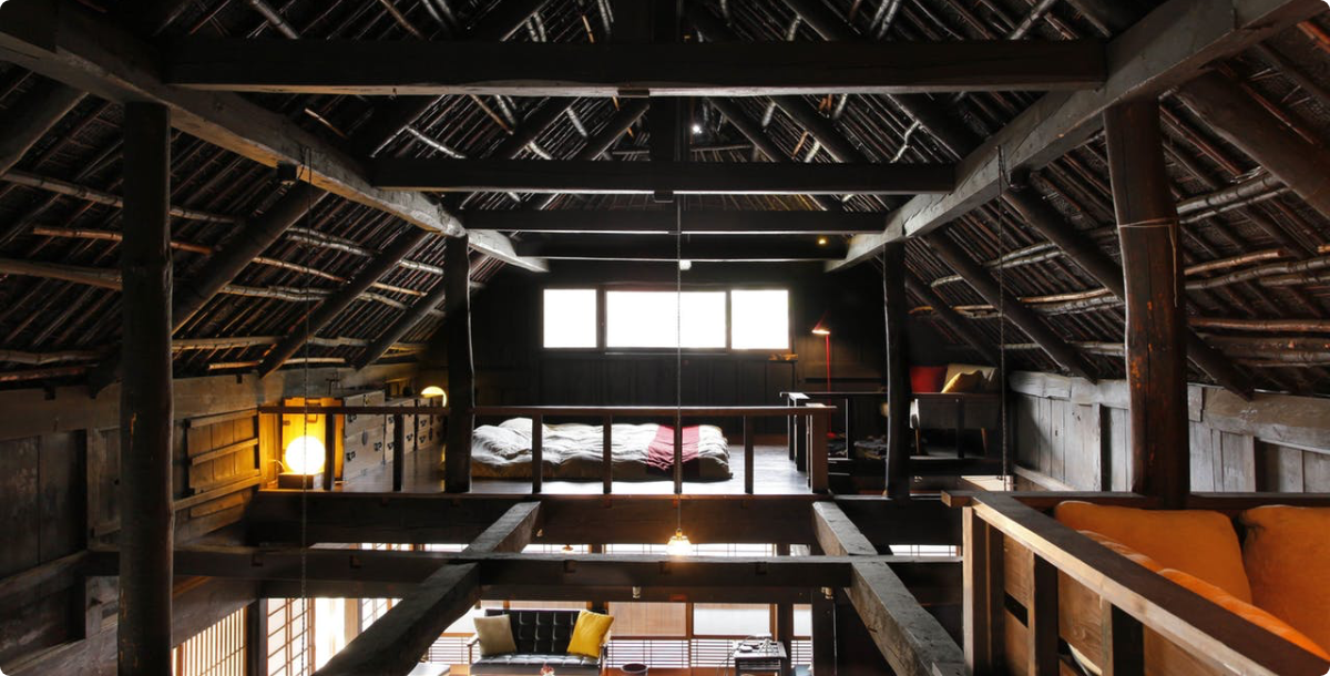 「仲間と一緒に、自然に囲まれて暮らしてみたい!」、そんな願いを叶えてくれるのが、「LOOF 澤之家」。築100年以上の古民家を改修して作られた一軒家タイプの貸し宿です。東京から90分ほどで行け、さらに富士山までも約30分という立地。古民家だからこそ味わえる“懐かしさ”のなかに少しだけ“新しさ”を取り入れたデザインが、非日常へと導いてくれます。