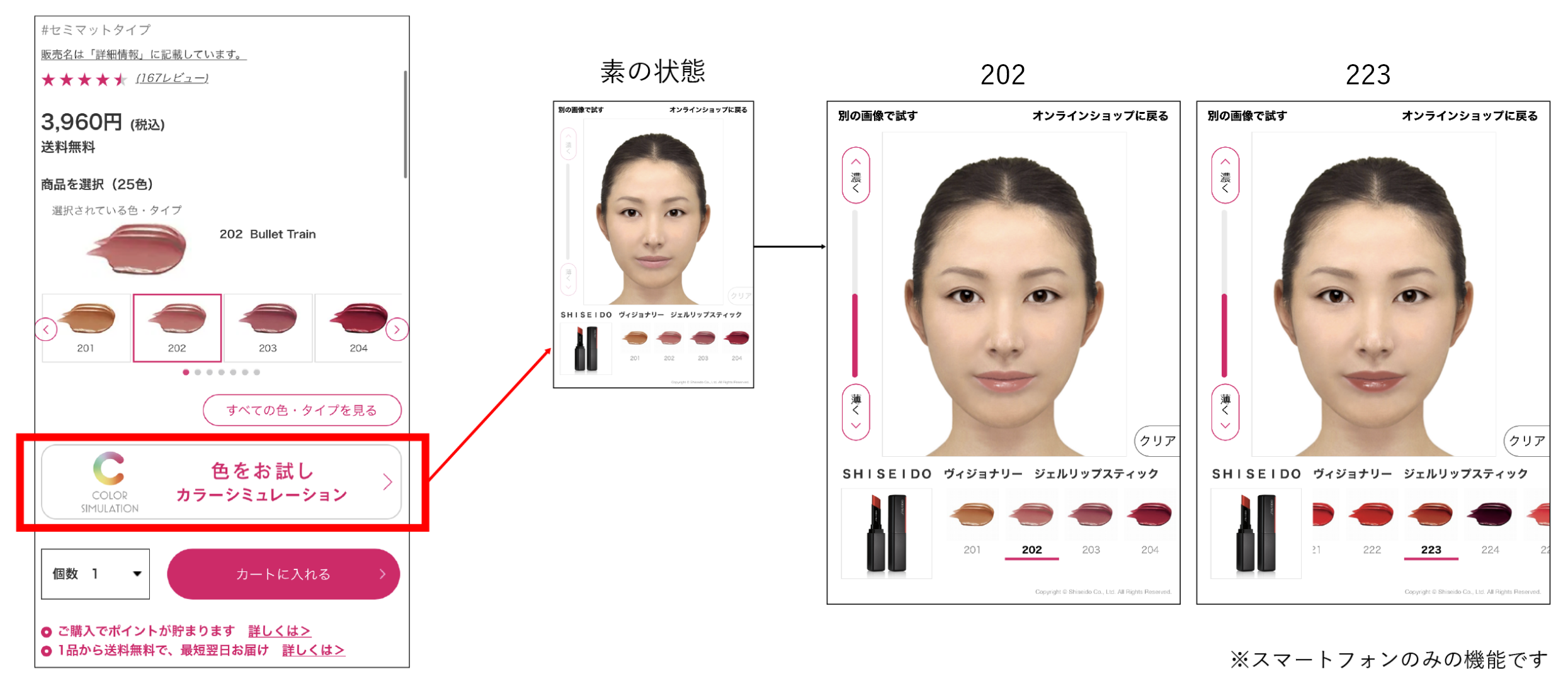 ほかにも、Web上でテスターのように使うことができる、「メイクシミュレーション」機能もあり、実際使用してみるとどんなイメージになるのかを知ることができます。店頭でコスメを手にとって見比べるように、Web上でイメージを確認しながら選ぶことができるのは嬉しいですよね。