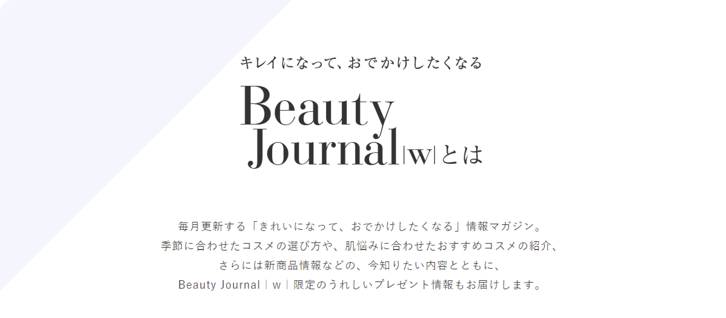 毎月更新される美容マガジン「ビューティージャーナル」では、美容のプロたちが教える、季節にあわせたトレンドメイクのハウツーや、その時期ならではのお悩みを解決する工夫を順次公開中。