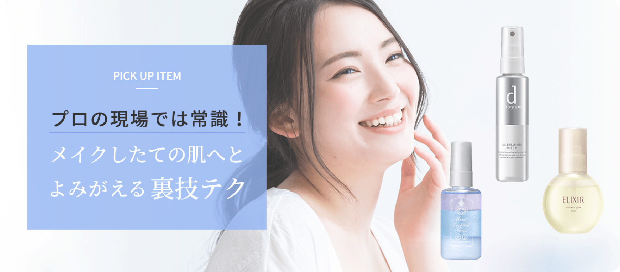そこで、特集のなかでも特に気になった「メイクしたての肌へとよみがえる裏技テク」を実践してみました!頬の乾燥が気になるのと、ツヤ肌が好みだったので「エリクシール つや玉ミスト」を購入しました。