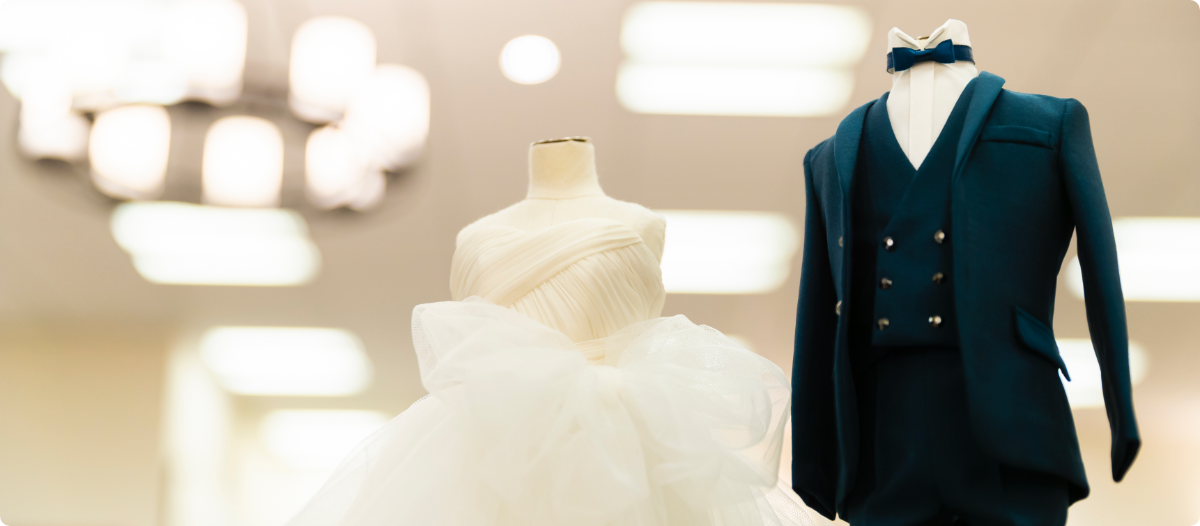 創業当時、貸し衣裳店からはじまったワタベウェディングは、自社工場でつくられた、豊富なドレスラインナップが魅力のひとつです。美しいだけでなく、リゾ婚のために作られた軽くて涼しい生地のドレスや、挙式とパーティーでイメージを変えられる2WAY、4WAYの衣裳など機能性もバツグン!