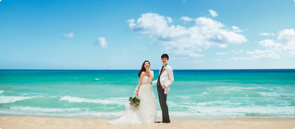 例えば、ウェディングフォトだけをリゾート地で撮影して新婚旅行を楽しみ、挙式&パーティーは国内で開催をして、家族や友人に囲まれてお祝いをしてもらう…なんていうこともできます。